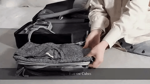 Each cube features two zippers: one for packing and one for compression. Once you've filled the cube with clothes, zip the main zipper to secure everything. Then, press down to release excess air and zip the compression zipper to lock it in—giving you more space in your luggage.